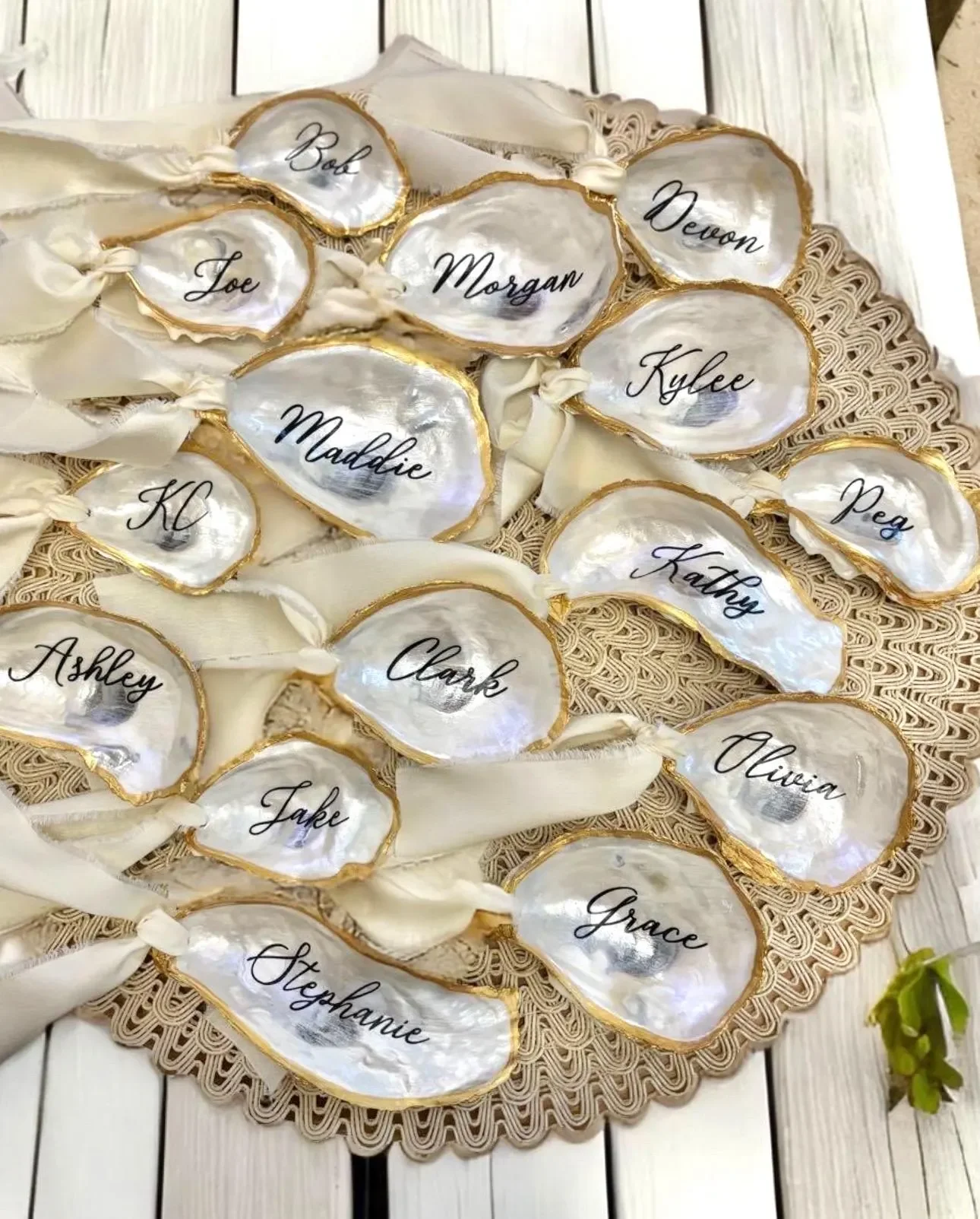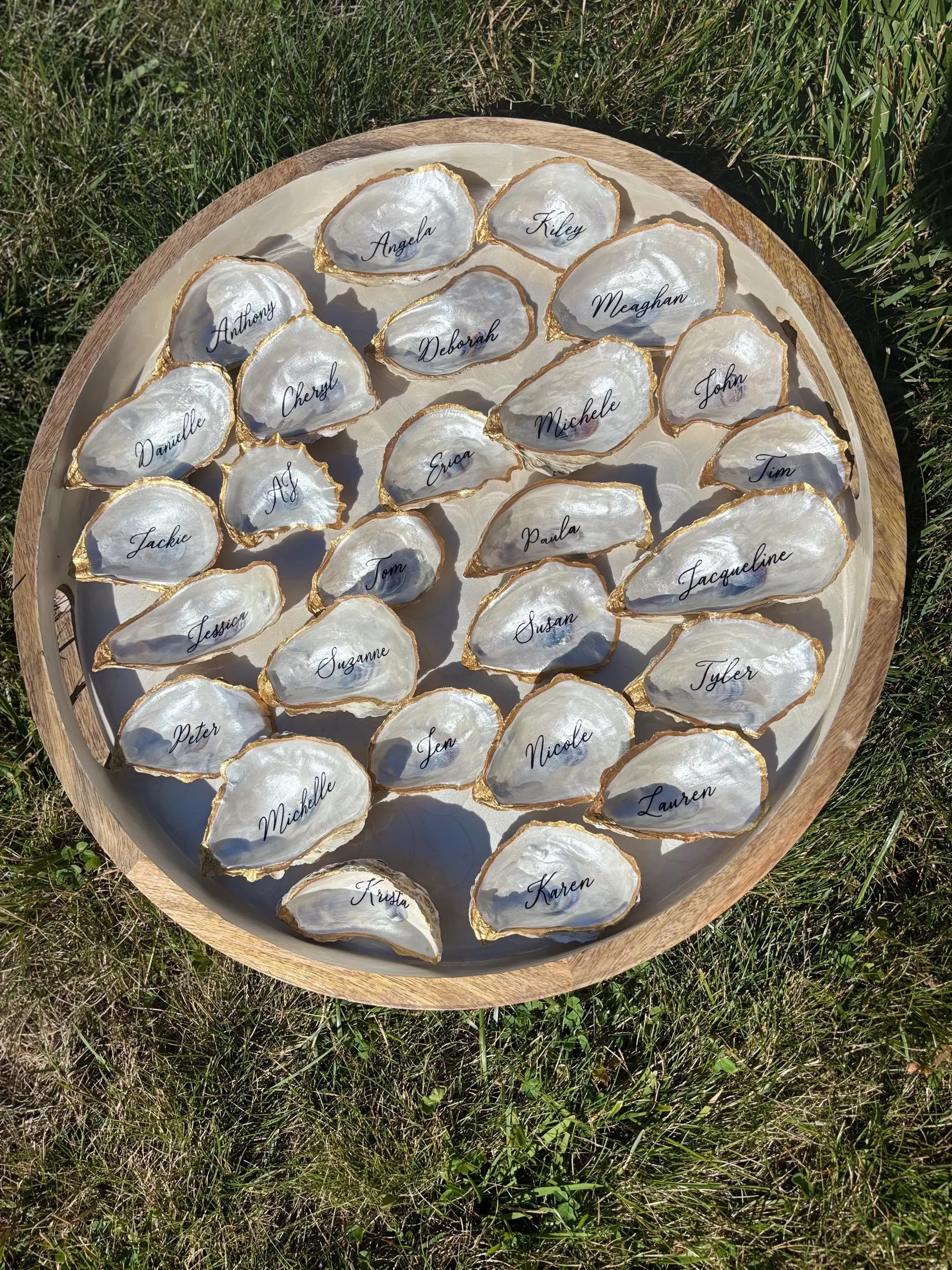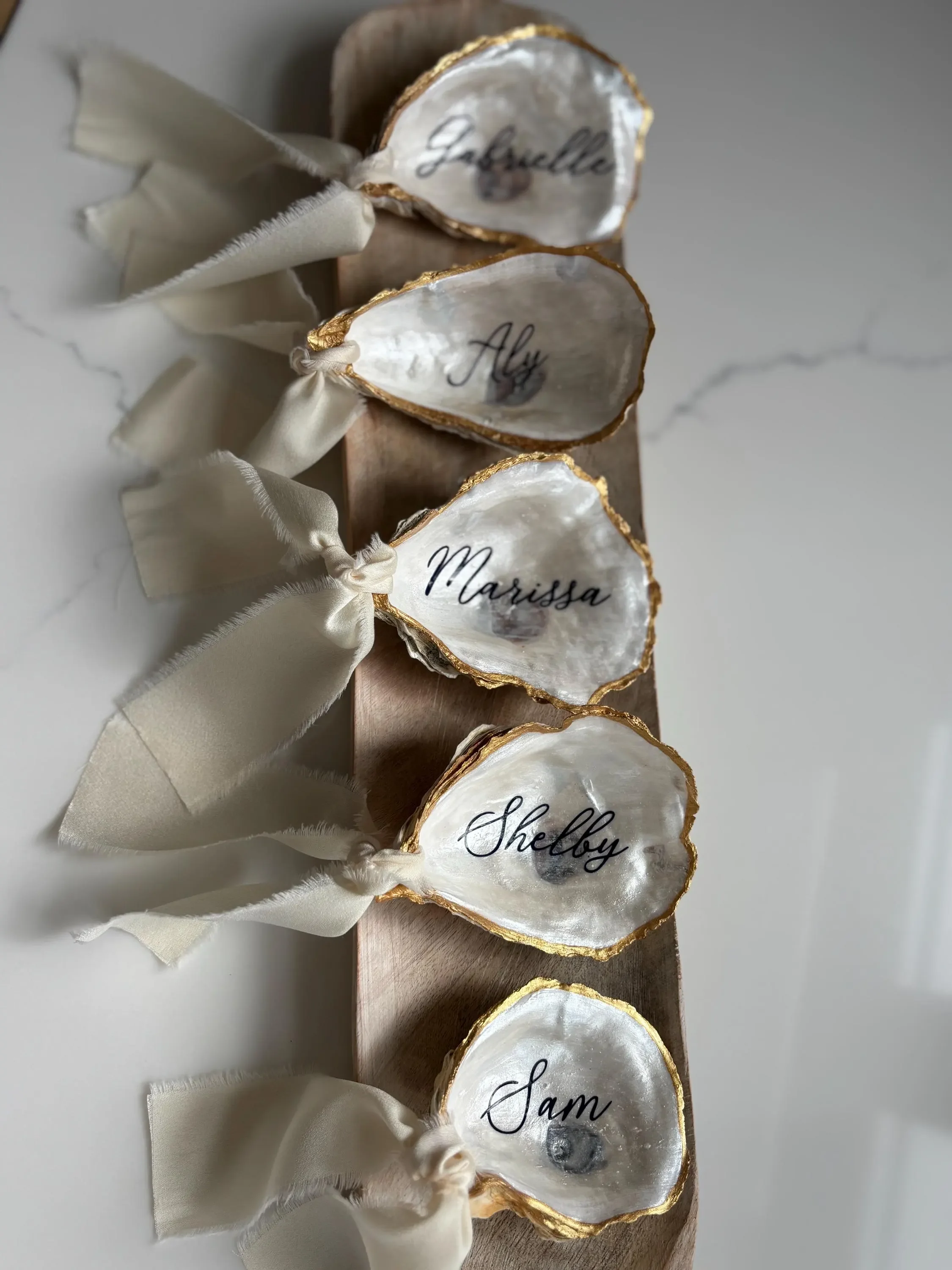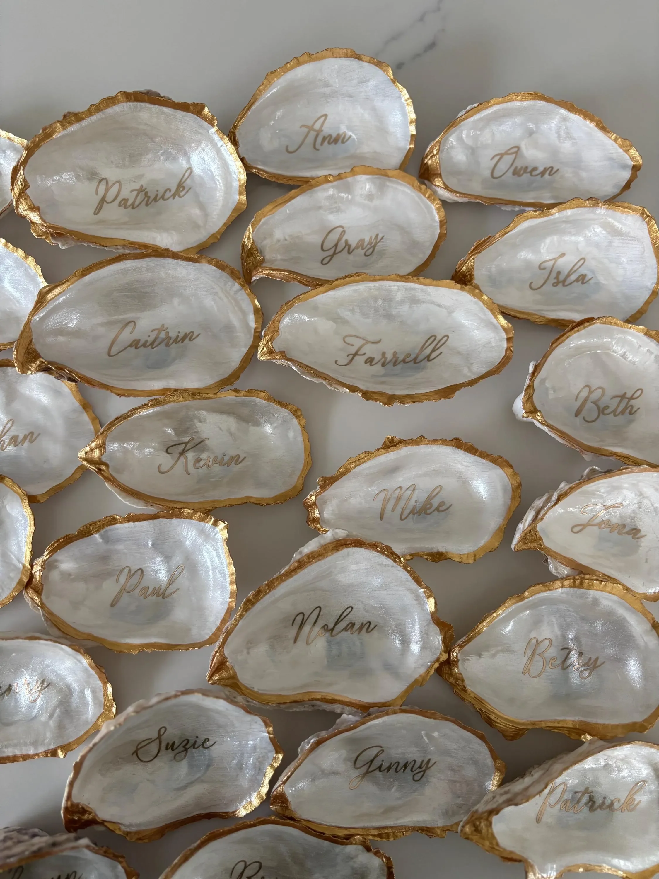 We are now accepting in advance orders for 2026! Please use our contact form to inquire about our process to reserve your oyster shell place cards to guarantee availability. We highly recommend reserving your order in advance for 2026 summer season. Final guest information isn’t due until 3 weeks prior to requested delivery date.